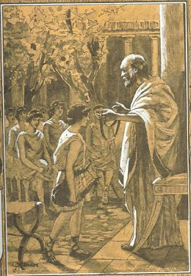 Από την ηλικία των 7 ετών την ανατροφή των παιδιών αναλάμβανε η Πολιτεία με τους παιδονόμους, που είχαν την επίβλεψη των νέων, τους δίδασκαν λίγα γράμματα και μουσική, τους σκληραγωγούσαν τιμωρώντας και μαστιγώνοντας.