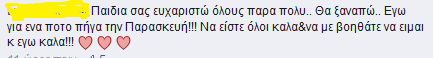 Η ιδια έγραψε στο facebook απαντώντας στα μηνύματα συμπαράστασης των φίλων της: